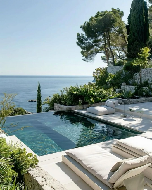 - Organic, sculpted silhouettes inspired by Mediterranean cliffs, coastlines, and architecture