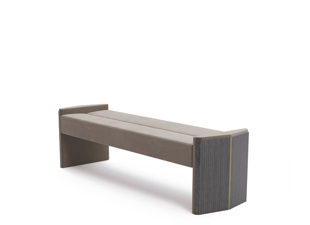 Algerone is an ottoman in neutral and warm tones designed to bring more character into any space. It was meticulously handcrafted and upholstered in brown velvet while also presenting details in brass and glossy Eucalyptus Frisé Veneer. A luxury item that is rather adaptable to any ambiance or style.
