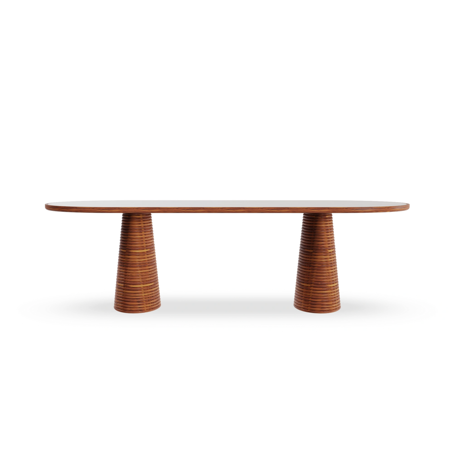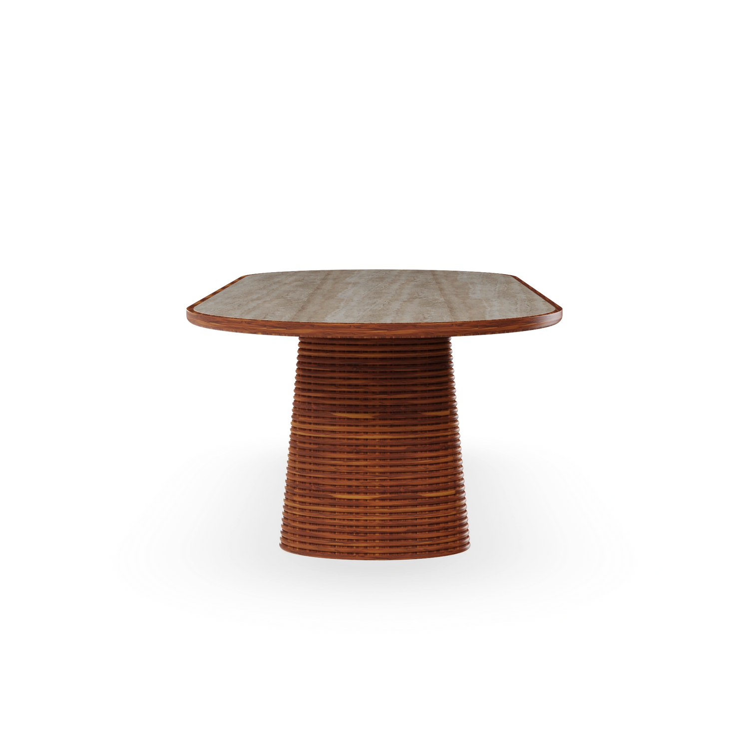 The Altea Dining Table captures the spirit of Mediterranean living with its bohemian-inspired design and refined craftsmanship. Handcrafted in iroko wood for durability and elegance, it is perfectly suited for outdoor use. The smooth travertine top enhances its natural beauty, creating a timeless and versatile centerpiece for alfresco dining.