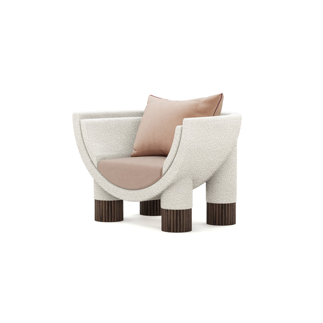 The most distinctive feature of the Anna Armchair is its ribbed walnut legs, which add an element of refined texture and sophistication. These rounded legs are sturdy and elegantly designed, offering a natural touch that complements the modern look of the chair.