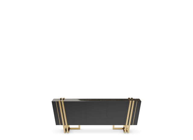 The Apotheosis Sideboard is a hymn to sophistication and design, creating a powerful presence that revolutionizes any project's look. Its straight lines contribute to a glorious construction that embodies the spirit of exclusive design. With a daring and elegant balance between marble, lacquer, and brass lines, it exudes timeless elegance.