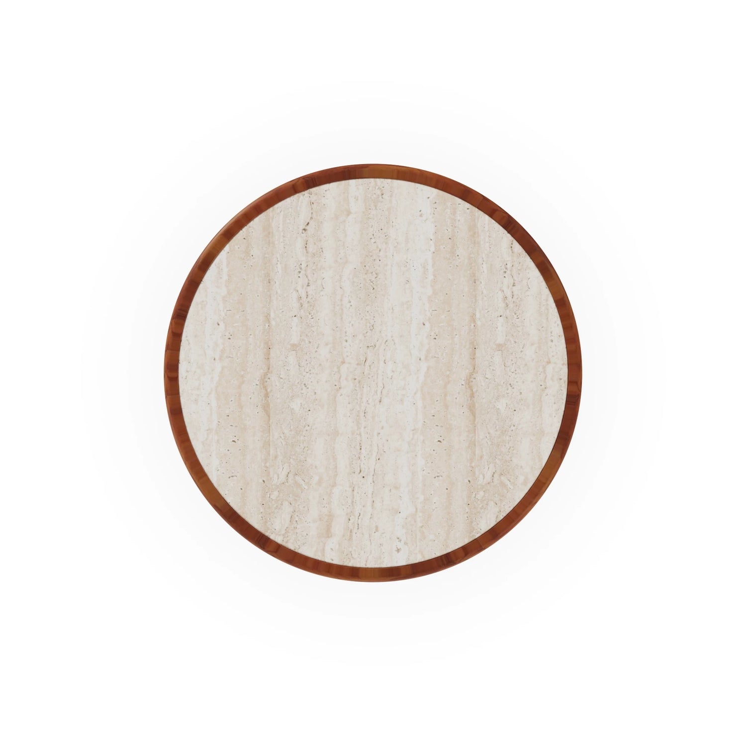 The Bari Side Table blends Mediterranean elegance with a bohemian-inspired design. Handcrafted with an inlaid travertine top and a ribbed iroko wood base, this piece is both durable and stylish, perfect for outdoor living. Its sculptural silhouette and vintage-inspired details add a timeless charm, making it an ideal accent table for terraces.
