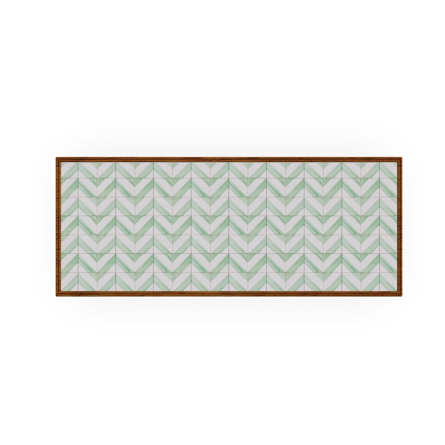 The Benirrás Dining Table is a statement of refined craftsmanship in outdoor luxury furniture. Handcrafted from durable iroko wood, this table is designed to withstand outdoor living while exuding timeless Mediterranean charm. Its ribbed-effect base adds a sculptural presence, while the inlaid ceramic top features a geometric Mediterranean pattern in soft green and white tones, reminiscent of sunlit terraces overlooking the sea. A perfect balance of artistry and function, the Benirrás Dining Table elevates al fresco dining with elegance and character.