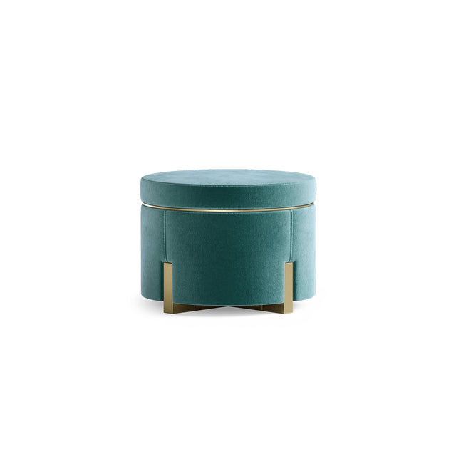 Timeless elegance draws the inspiration of the Berke stool. The discreet brass feet support the round shape, creating the appearance of levitation. The detailed seams of the design are its main feature, though.