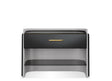 The Charla Nightstand retains an identical organic shape and boundless elegance to its counterpart, adding premium elegance to any bedroom. Its glistening layout is achieved through black lacquer, walnut root, leather, and polished brass details. Besides its modern design features, Charla has technological singularities for ultimate functionality.