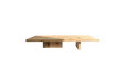 Light-toned coffee table with a Japanese spirit. Rectangular top with softened edges, visible grain, matte finish. The base embraces a controlled asymmetry: two opposing supports, a refined and balanced design. A minimalist, precise, and calm piece that lets the material and space speak.