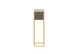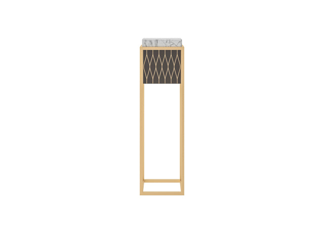 A modern vase stand by Modenese Luxury Furniture featuring a marble top and a metal frame with intricate diamond-patterned accents. The slim design and warm tones make it an ideal display piece for any living space, combining style and functionality effortlessly.