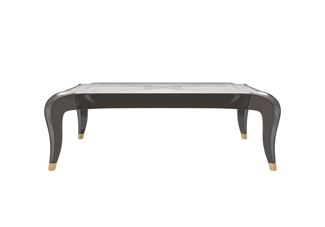The Curved Leg Coffee Table by Modenese Luxury Furniture exemplifies elegance and timeless design. Its gracefully curved legs and smooth marble top offer a perfect contrast of softness and strength. The golden accents on the feet elevate the piece, making it a luxurious addition to any living room that values sophisticated, yet understated, design.