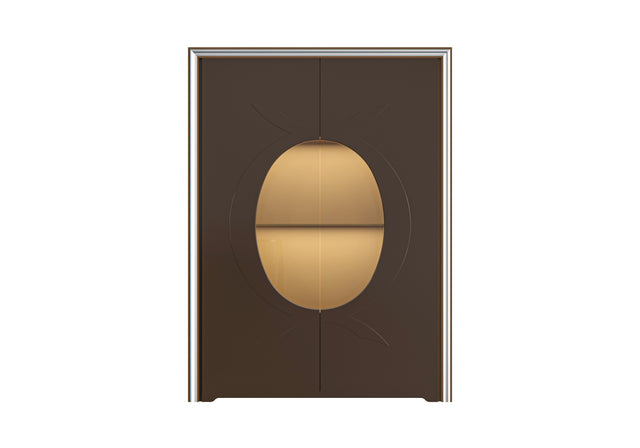 A sleek and modern cabinet in a rich dark finish by Modenese Luxury Furniture, featuring a central oval design. The smooth surface and minimalistic style make it a sophisticated addition to contemporary interiors, ideal for discreet storage.