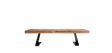 Reclaimed oak bench with a refined silhouette, visible grain and knots. Two Z-shaped steel legs, graphic and stable. A simple, warm, and authentic piece.