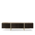 Getting its inspiration from the perfect lines existing in the geometric world, the astonishing simplicity of the Edge TV Cabinet is the pure representation that less is more. Made from Oak Veneer, Lacquered Wood, Light Emperador Marble and Aged Brass. on the outside, this modern example of trendy design uses lacquered wood on the inside.