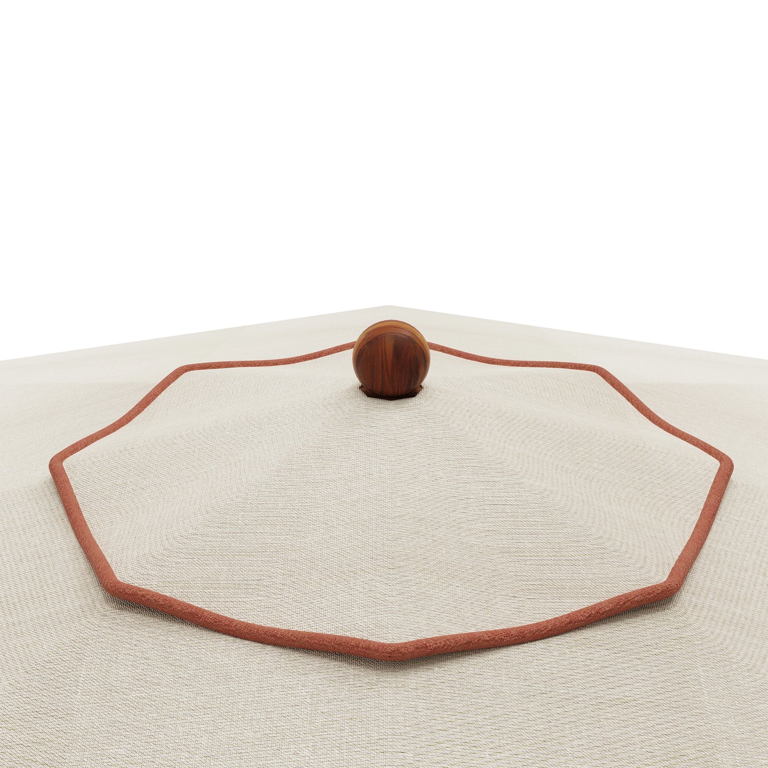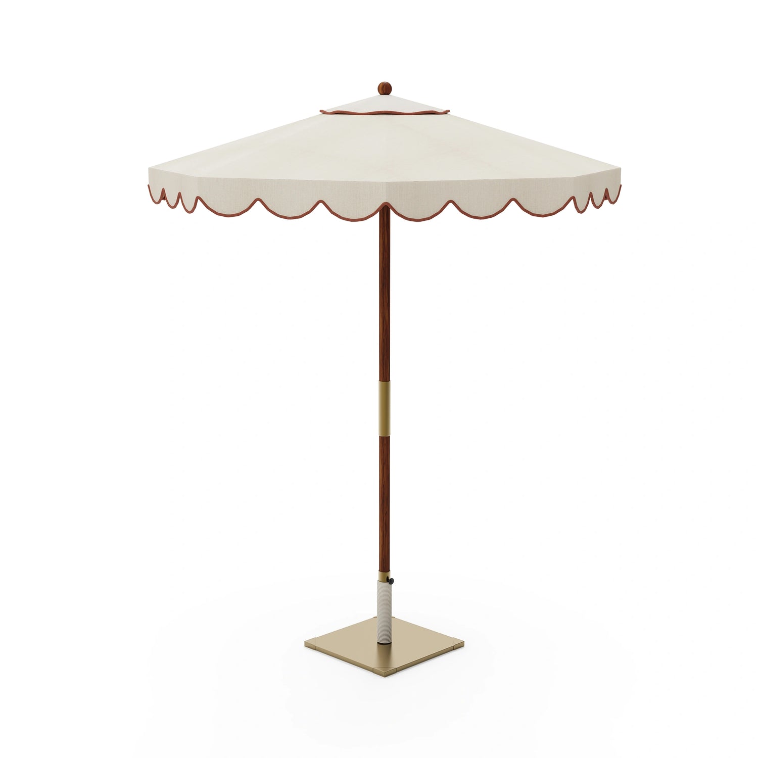 The Elba Parasol by Mediterrazza is a distinctive piece of outdoor luxury furniture, featuring a handcrafted iroko base with elegant metal details for strength and style. Its roller opening system offers ease of use, while it´s vintage shade with a decorative piping and an ikat-inspired interior pattern bring unique character and vibrant Mediterranean vibes. Designed for both residential and hospitality projects, Elba combines artisanal craftsmanship, functionality, and timeless elegance to create shade with personality.