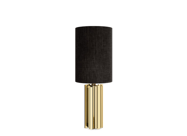 The Empire II Table Lamp introduces a new twist to the Empire collection by adding a new feature to the metallic series: fabric. The iconic lines in gold-plated brass and geometric vigour remain, but a new detail emerges as the lampshade appears dressed in a dashing black fabric that makes all the difference.