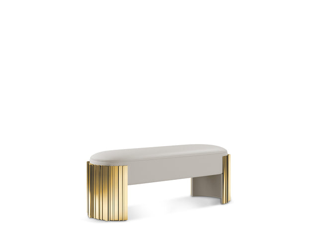 The Empire Ottoman is a design masterpiece from LUXXU's most renowned collection. This luxurious ottoman is crafted from exquisite polished brass and upholstered in Nata synthetic leather. It enhances any interior décor and offers versatile functionality as a stylish seating solution, a lavish footrest, or a chic accent.