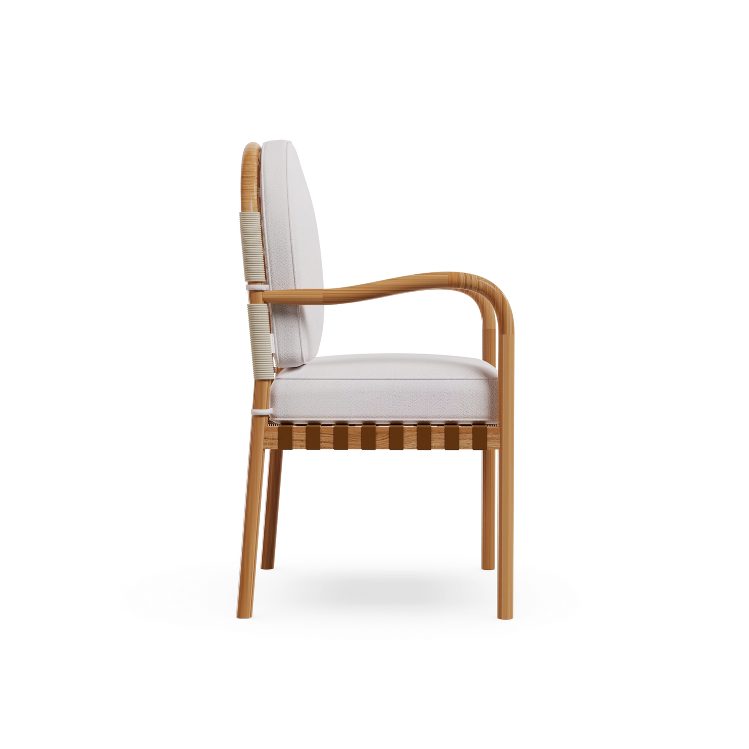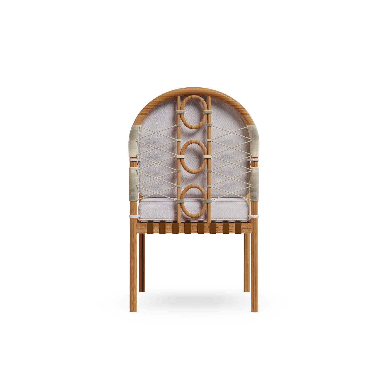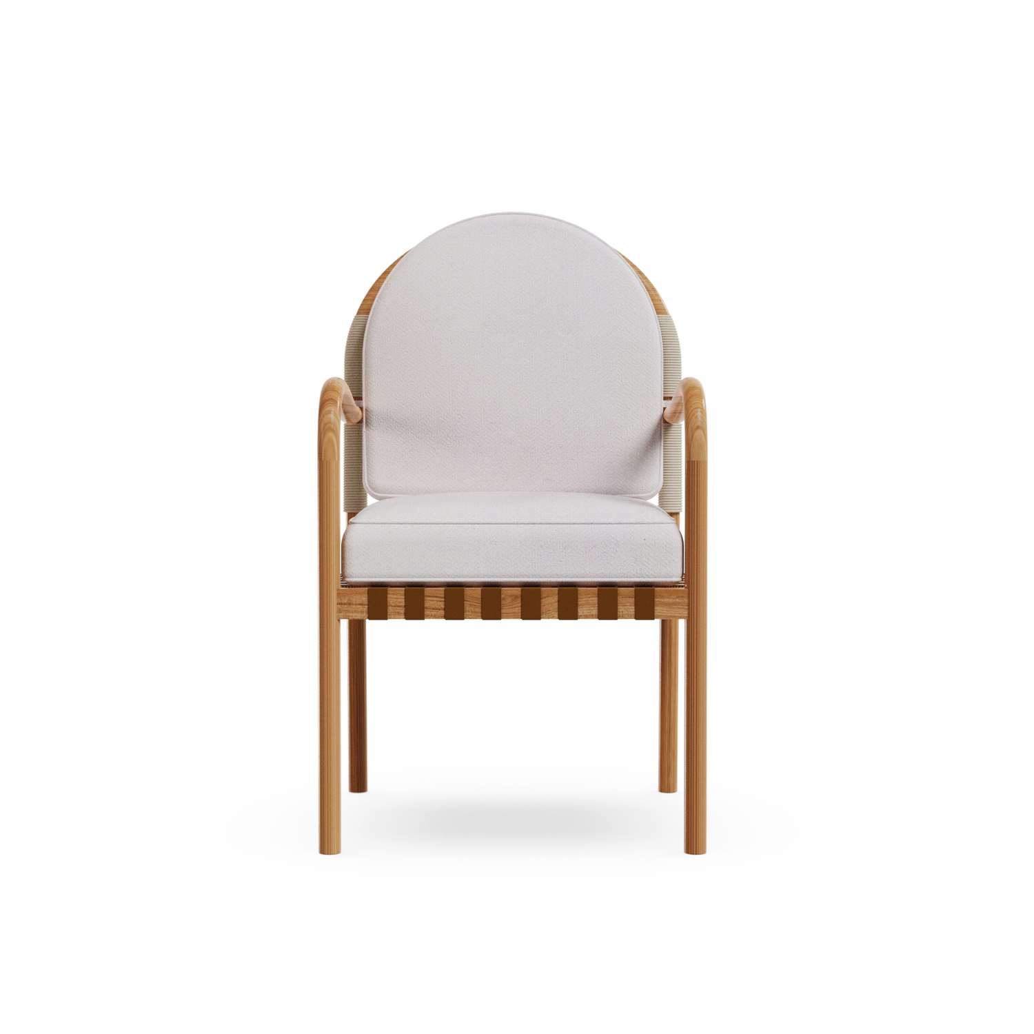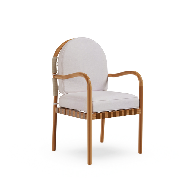 The Ferrat Dining Chair is a celebration of craftsmanship and Mediterranean elegance. Handcrafted in iroko wood, it is designed to withstand outdoor living while bringing warmth and character to any space. Its carefully detailed backrest, paired with plush seat and back cushions, ensures exceptional comfort. With a bohemian vintage-inspired style and artisanal attention to detail, the Ferrat Dining Chair is the perfect expression of outdoor luxury furniture