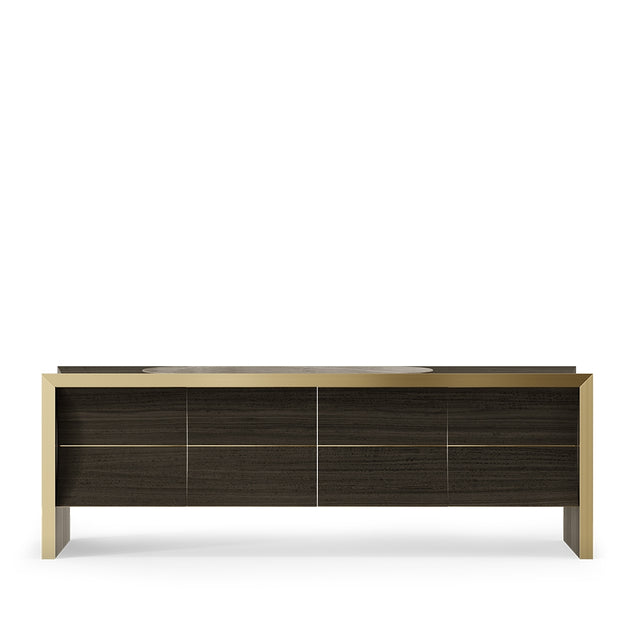 The Flexus Sideboard is the modern outcome of a transition of curved and straight lines. The simplicity of the lines in brushed brass that compose this sideboard combined with the use of Grey Eucalyptus Veneer, Lacquered Wood, Sahara Noir Marble. The final result is a unique masterpiece suitable for every contemporary project.