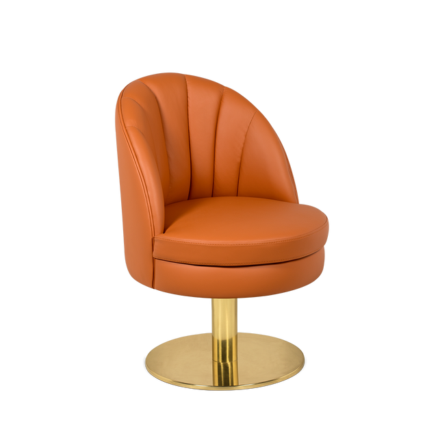 Part of a larger design collection for the living room but it can also be used as a side chair. Its curved low back has some stitched seam accents that give it a stylish look. It features a round polished brass swivel base that contrasts with the dreamy cotton velvet.