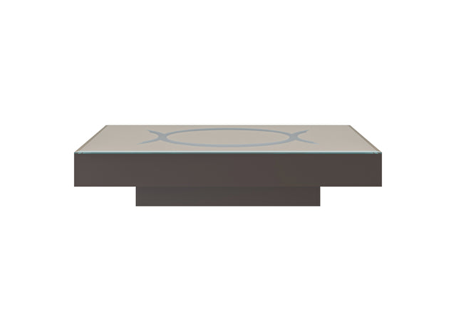 This contemporary coffee table by Modenese Luxury Furniture features a bold geometric design with a refined decorated rectangular top. The innovative structure and artistic flair bring a modern aesthetic to any room, combining functionality with style. Perfect for those who want to make a statement with their furniture while maintaining elegance.