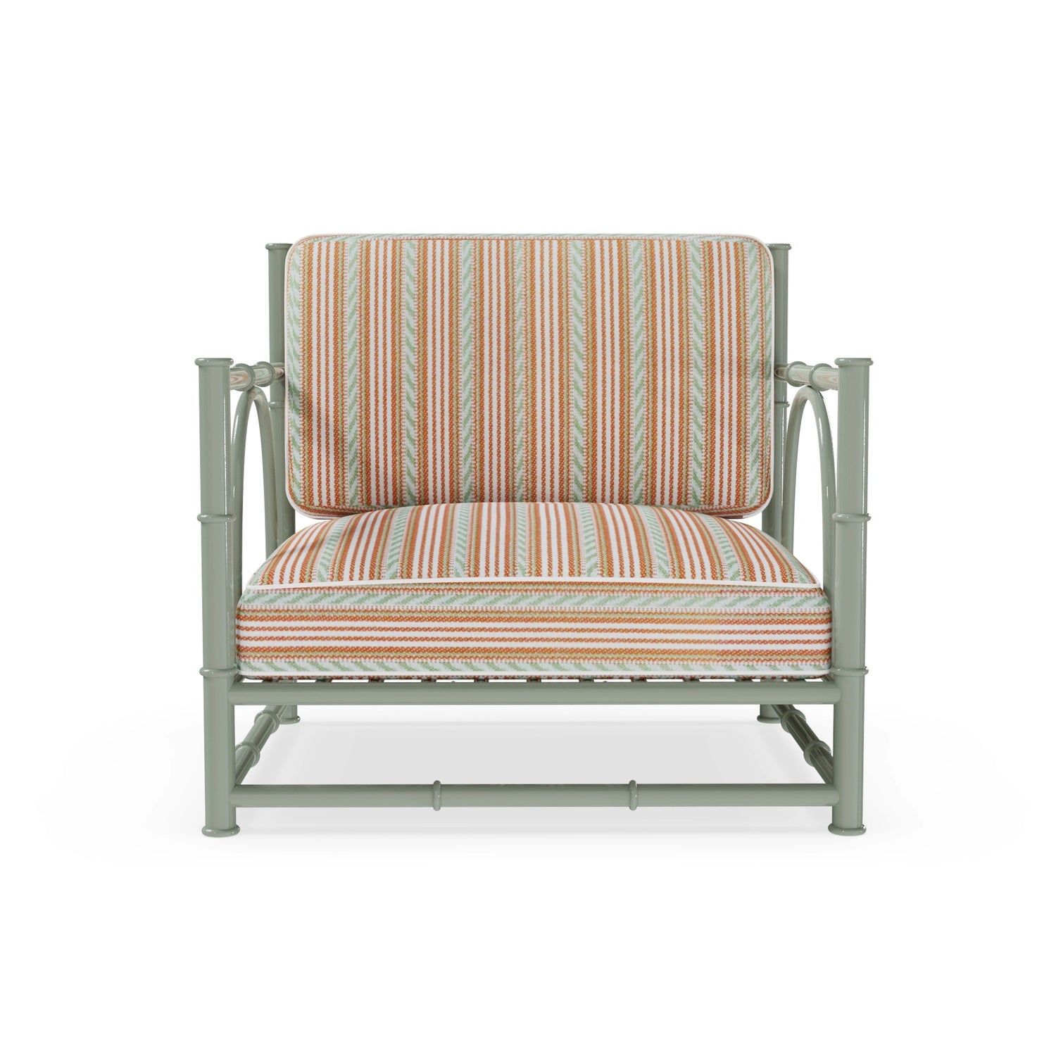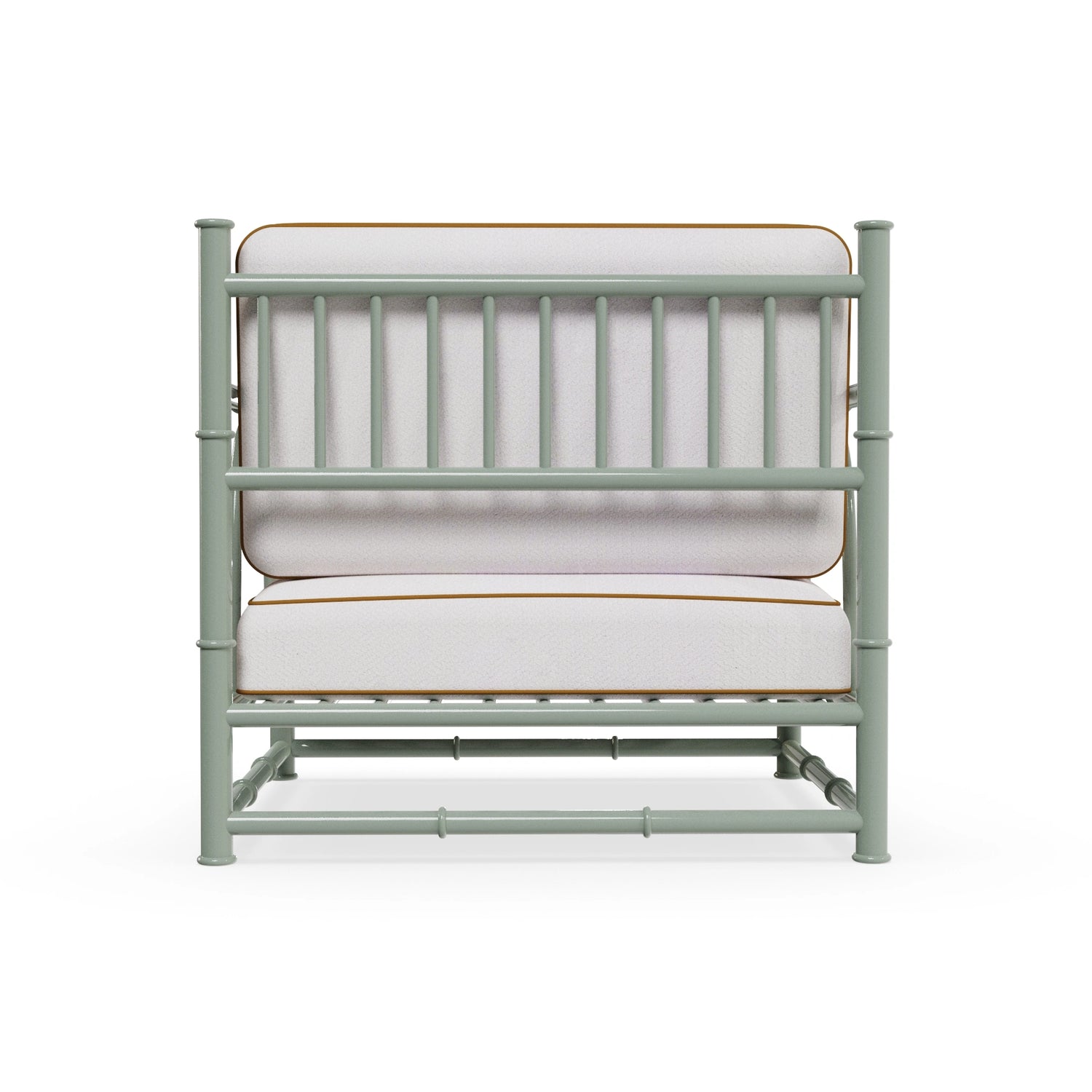 The Girona Armchair captures the effortless sophistication of luxury outdoor design, combining sculptural form with a relaxed, bohemian spirit. Handcrafted in lacquered metal, its frame features bamboo-inspired lines that evoke the natural textures of Mediterranean craftsmanship. Every curve and joint reveals an exceptional attention to detail, while the soft upholstered cushions offer inviting comfort and refined contrast. Both elegant and versatile, the Girona Armchair brings a sense of calm, artisanal beauty to terraces, patios, or sun-drenched lounges — a perfect harmony between contemporary design and coastal charm.