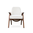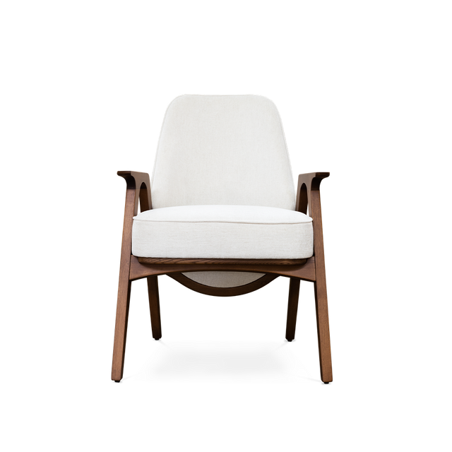 Like its family, Hadley chair reflects the best of the '30s. A timeless and flawless design. Wooden legs and armrests pair wonderfully with a customizable fabric for the seat and an art deco pattern on the back. This versatile piece is the perfect fit for a lounge or hotel lobby, or even as an accent dining chair alongside its counterpart.