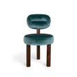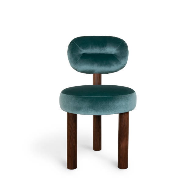 The high-end Henry dining chair design is based on the beauty of round shapes. The three-legged upholstered chairs are handmade in solid wood and with soft upholstery. It is the perfect way to add a modern twist to your interior room project while keeping things comfortable.