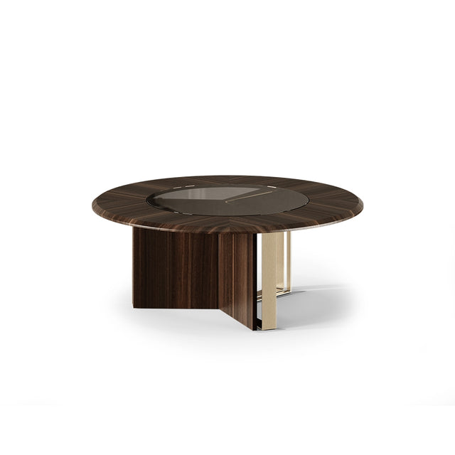 Howard has a simple yet alluring design. Surrounded by wood, the glass on the center reflects the beautiful play between the brass feet and the solid wood structure holding the tabletop. Its simplicity brings out the natural wood hues, being the perfect homage to contemporary design.