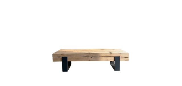 An imposing and elongated coffee table that will become the central element of your space. Indoor coffee table, crafted with reclaimed oak beams and steel.