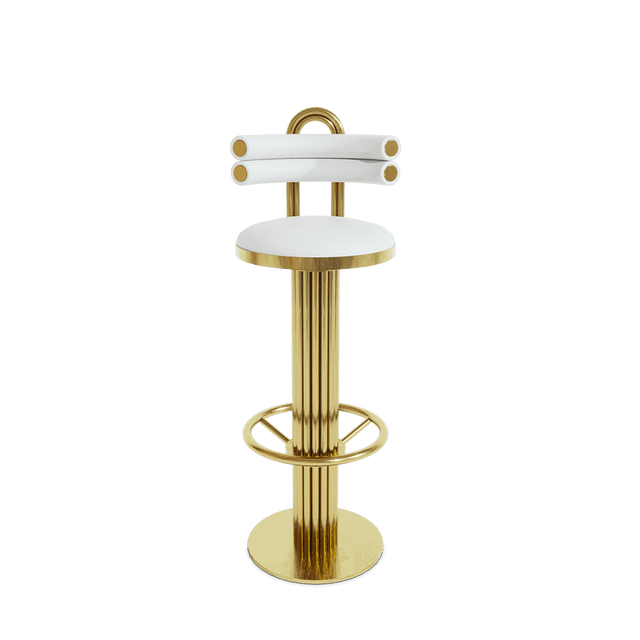 The Kelly Demilune chair draws inspiration from the sculpted arches of the classic movie Casablanca's bar. With tubular back seat and luxurious metal details, it's a timeless and unforgettable piece. This unique bar chair embraces its leading role in our modern product selection, offering creative round shapes and multiple customization options.