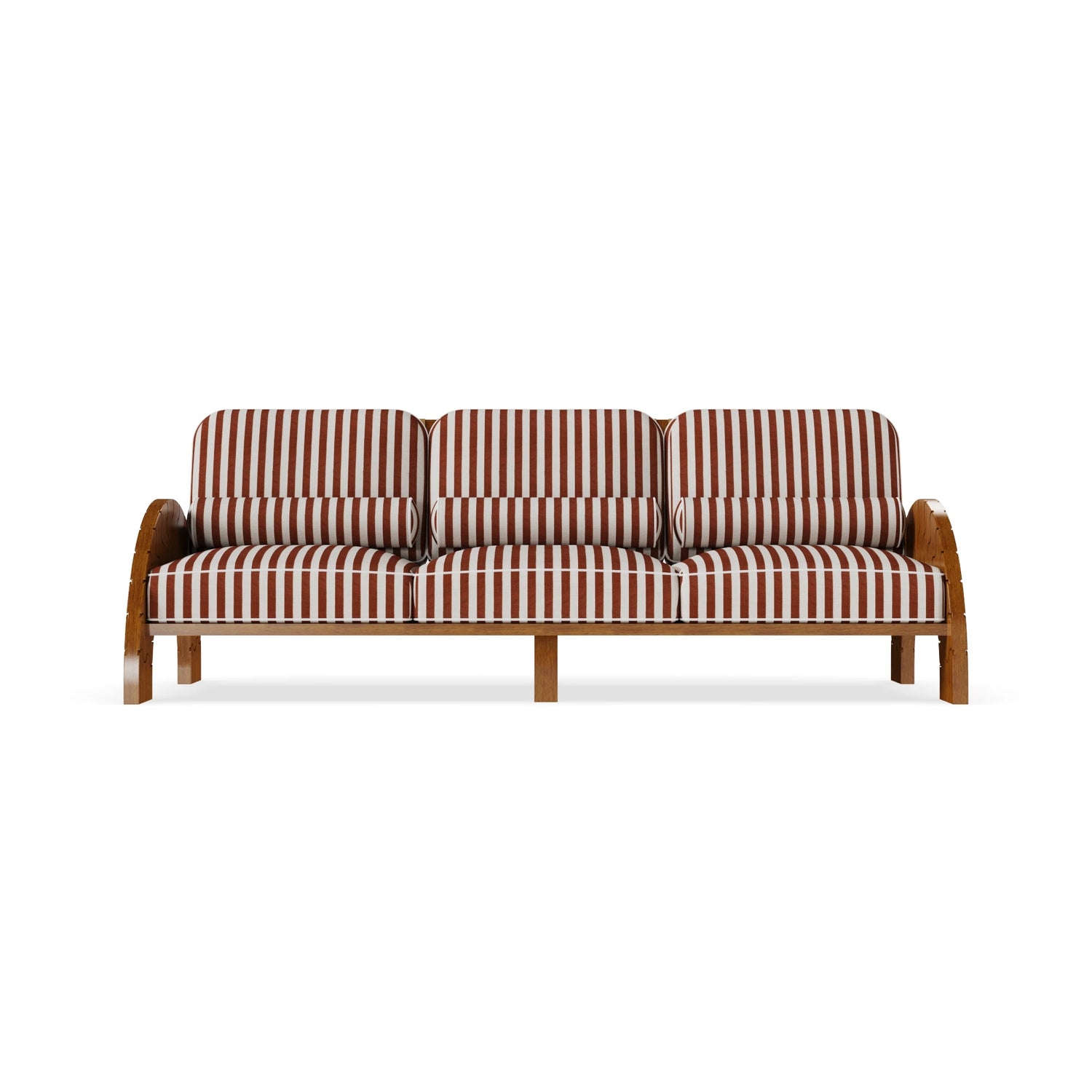 The Luna Modular Sofa embodies the essence of luxury outdoor design with a bold sculptural presence and artisanal precision. Handcrafted in solid Iroko wood, its curved arms feature sun-inspired carved details that capture the spirit of Mediterranean warmth and light. The leather strap backrest adds depth and refinement, blending natural textures in perfect harmony. Upholstered in a striped outdoor fabric that evokes coastal serenity, Luna brings a timeless yet contemporary aesthetic to terraces and open-air lounges. A modular masterpiece designed to elevate outdoor living with elegance, comfort, and Mediterranean soul.