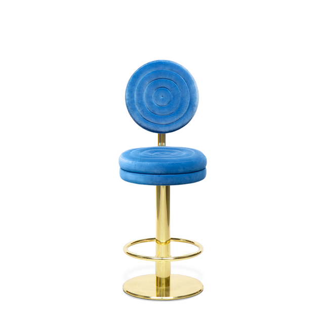 The McCarey bar chair is inspired by iconic film director Thomas Leo McCarey. It features a fun and creative design with smooth upholstery and bright metal details, adding an ultra-modern touch to any space. Versatile and stylish, it's perfect for kitchen projects or hotel bars.