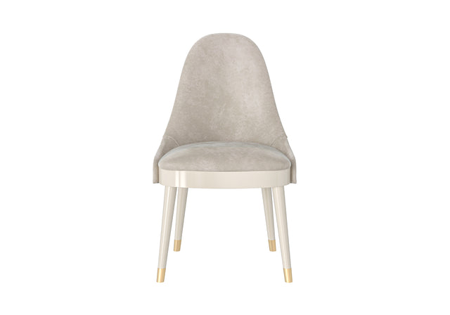 A sleek and contemporary chair by Modnese Luxury Furniture with plush upholstery and a glossy finish. The subtle golden accents on the legs enhance its luxurious appeal, ideal for modern interiors.