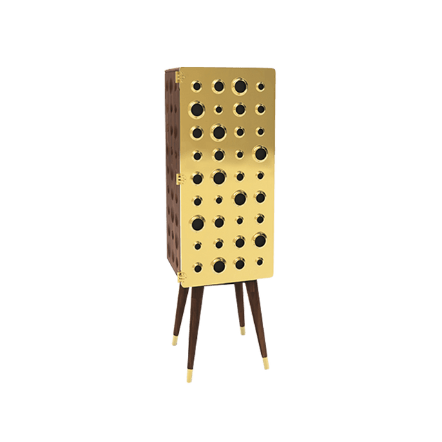 A stylish and functional furniture that blends mid-century charm with a contemporary design style. Monocles features tapered legs with brass ferrules and a body built in solid walnut wood, both sides and back engraved with stunning circles inspired by the mid-century style.
