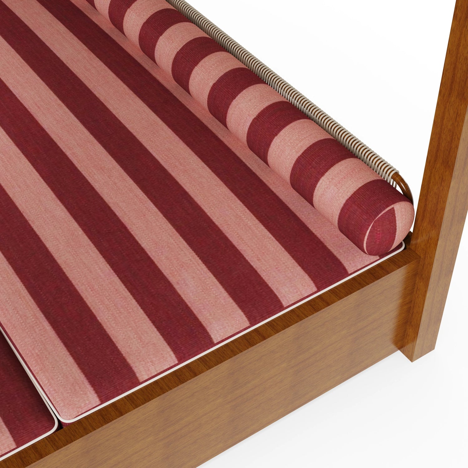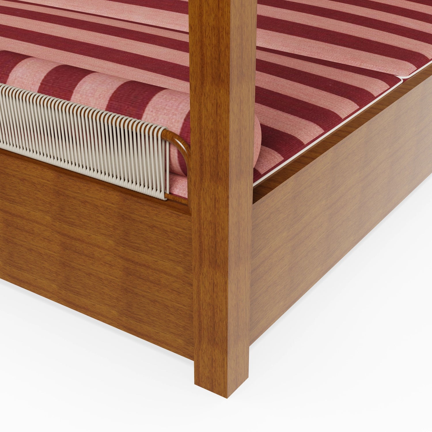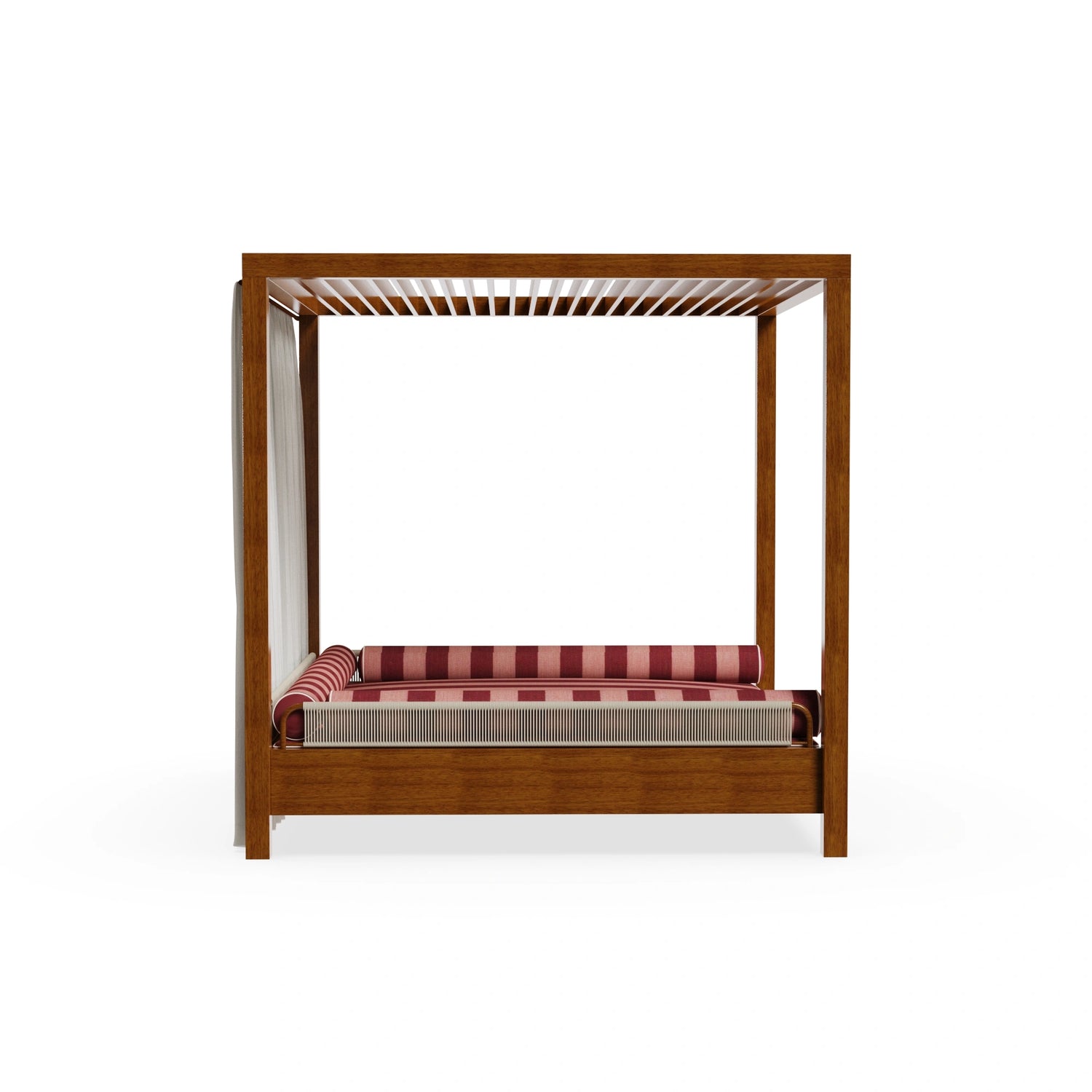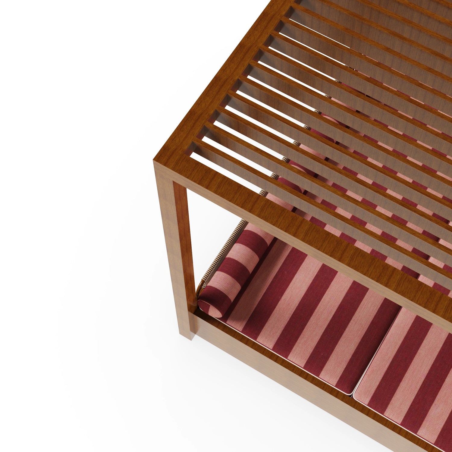 The Paraggi Double Sunbed by Mediterrazza is a statement of outdoor luxury furniture, handcrafted in iroko wood with sophisticated synthetic cord details along the back and arms. Its generous cushions, upholstered in a playful striped fabric, ensure both comfort and style, while the option to add curtains provides extra privacy and elegance. Perfect for residential retreats or hospitality spaces, Paraggi combines Mediterranean charm, artisanal craftsmanship, and elevated outdoor living.