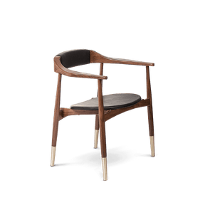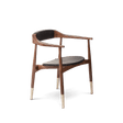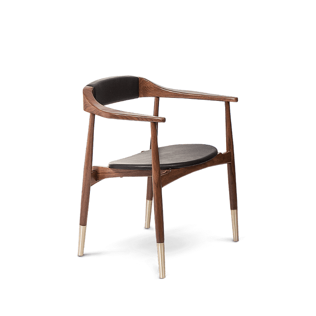 Inspired by the most famous occasional designs, a mid-century masterpiece and an homage to the modern living era. A durable and solid chair features a body structure produced in solid walnut wood. The seat and the back cushions are softly upholstered, contrasting with metal shoes on their legs.