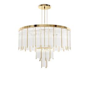 Drawing inspiration from the architecture of lighthouses, this suspended light embodies the elegant aeshethic of the Pharo lighting collection. Crafted from gold-plated brass and crystal glass, the Pharo II Suspension Lamp is the perfect addition to elevate the most sumptuous of interiors from living rooms to master bedrooms.