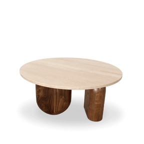 Philip’s unique style emphasizes the simple geometrical shapes of modern architecture, reinterpreting the simplicity of the outside on the inside. The personality of the center table is given by the stunning combination of marble and brass, dancing gently around the robust body made out of solid wood.