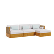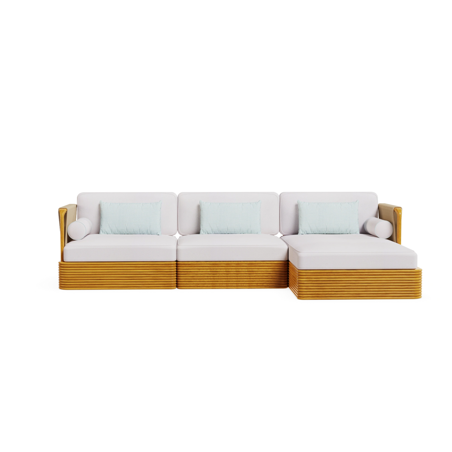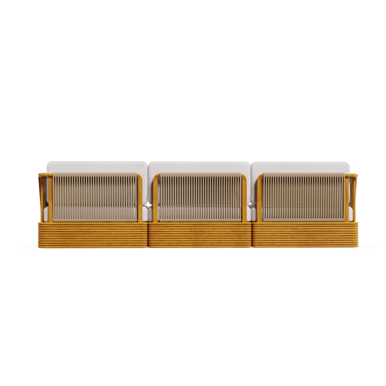 The Ramatuelle Sofa redefines outdoor luxury furniture with its handcrafted design in premium iroko wood, chosen for its durability in outdoor environments. Featuring a carefully detailed back with elegant cord elements, this sofa combines craftsmanship and Mediterranean soul. The ribbed base adds a bohemian vintage touch, while the generously deep and high seat and back cushions ensure superior comfort. Perfect for both residential and hospitality projects, Ramatuelle blends timeless design with ultimate relaxation.