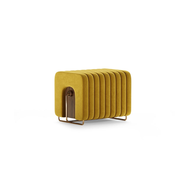 The Rivers stool gathers its inspiration from the bold elegance of the 60s. The alluring pattern combined with the sophisticated brass feet gives the stool a unique style, perfect to improve any interior.