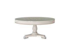 A charming round table with a central pedestal baseby Modenese Luxury Furniture. The white finish and decorative feet add a refined touch, making it an excellent centerpiece for intimate dining spaces or elegant breakfast nooks.