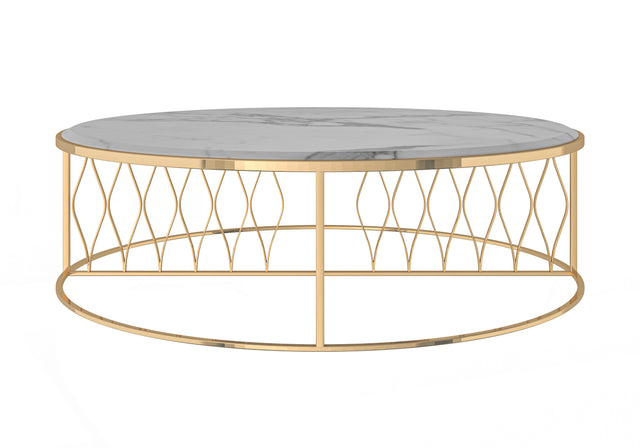 Elevate your living room with this round marble coffee table by Modenese Luxury Furniture, featuring a smooth marble top and a chic, geometric gold base. The perfect blend of modern design and luxury, this table adds sophistication and elegance, making it a stunning addition to contemporary interiors.