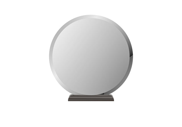 Sleek and minimalist, this circular mirror by Modenese Luxury Furniture features a clean, timeless design that complements any space. Its sturdy base ensures stability, making it a practical yet stylish addition to your decor.