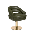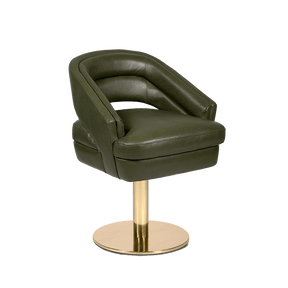 A mix of mid-century aesthetics with a contemporary twist. A round polished base and a timeless seductive upholstered layer over a comfy foam frame on the top. Extremely sculptural, it features an open back and deep horizontal tufting, both on the seat and its back.