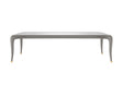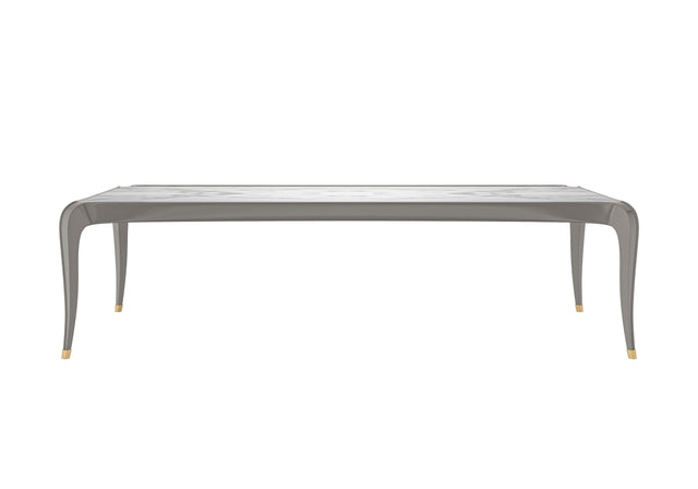 A minimalist dining table by Modenese Luxury Furniture with gracefully curved legs. The light frame is accented by golden tips, adding a subtle touch of sophistication to this modern yet timeless design.