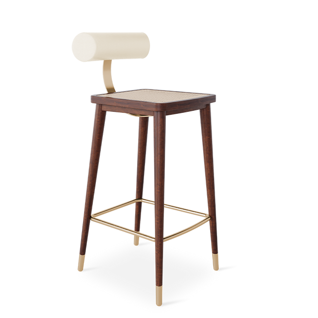 The Toro bar chair is a stylish mid-century design, handmade in solid walnut with metal details. The soft upholstered back rest and the addition of straw to its seat gives it a French bistrot chic vibe, perfect for elevating your home decor. It's a simple and stylish option that complements any style and maximizes your counter space.