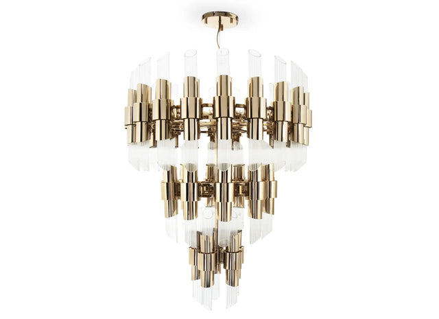 Drawing inspiration from the most unusual planetarium in the world, the Tycho Chandelier is a layered lighting fixture made of high-quality brass rings and crystal glass tubes. Highly decorative and elegant, the Tycho fits perfectly into modern lounges and dining areas.