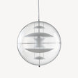 This decorative VP Globe Glass pendant features a crystal clear transparent acrylic outer sphere with five internal reflectors suspended by three steel chains. The reflectors in opal white glass makes it easy for light to shine through. With the VP Globe, Panton’s ambition was to design a lamp that could catch the eye and unite a room, regardless of whether it hung alone or in clusters. This makes the pendant an ideal choice above a dining room table, in a hallway or long corridor, or as a sculptural element in a corner.