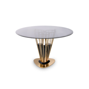 A dramatic twist for a glamorous table, Winchester truly stuns with its peculiar design that will fit in any modern and luxurious dining room. With a stylish and high-end look, this dining table steals the show in any setting. The triangular-shaped base adds a dramatic twist to this glamorous table, contrasting with the round glass countertop.
