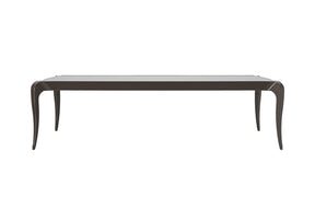A sleek rectangular dining table with an elegant wooden top and dark wooden frame by Modenese Luxury Furniture. The gracefully curved legs add an elegant touch, blending modern simplicity with classic charm. Perfect for spacious dining areas or formal settings.