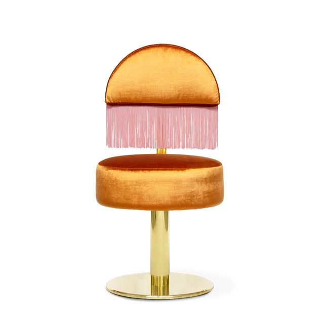 The Zsa Zsa dining chair immediately recalls the world of Burlesque, Zsa Zsa Gabor is the perfect exponent of this world. Our first thought? Fringes, strong color, and sensuality, three concepts that made “Moulin Rouge” one of the most iconic movies in the 50s.